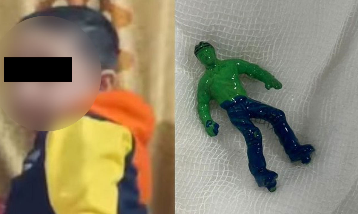 Medical examination and endoscopy revealed a Hulk figure stuck in the child’s throat.