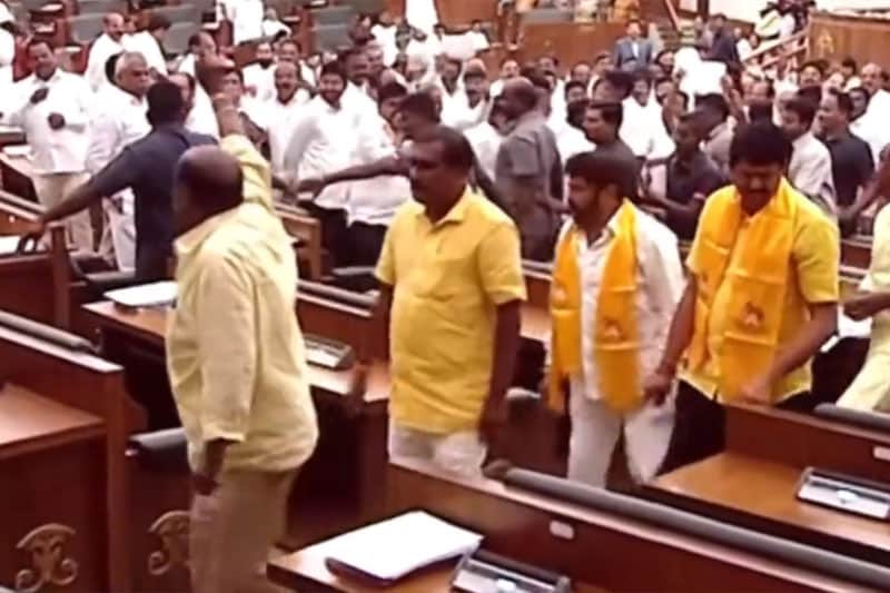The Speaker suspended K Atcchannaidu, N Balakrishna, B Ashok, Adireddy Bhavani, Gorantla Butchaiah Chowdary, Nimmakayala Chinarajappa, Ganababu, Payyavula Keshav, Gadde Rammohan, Nimmala Ramanaidu, Manten Ramaraju, Gottipati Ravikumar, Yeluri Sambashiva Rao, and Dola Bala Veeranjaneya Swamy.