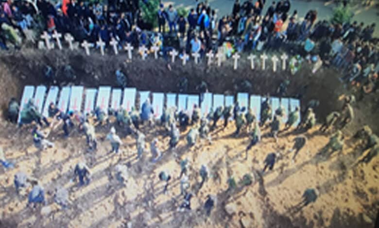 Imphal: The last rites of the 23 Kuki-Zo tribals, killed in Manipur’s ethnic violence more than seven months ago, were performed on Friday with thousands of men and women, including their kin, attended the mass burial ceremony in Kangpokpi district.
