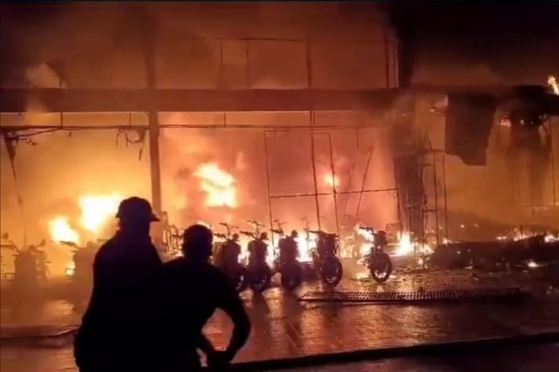 Police have registered a case and took up investigation. Officials suspect that a short circuit occurred when some electric two-wheelers were being charged.