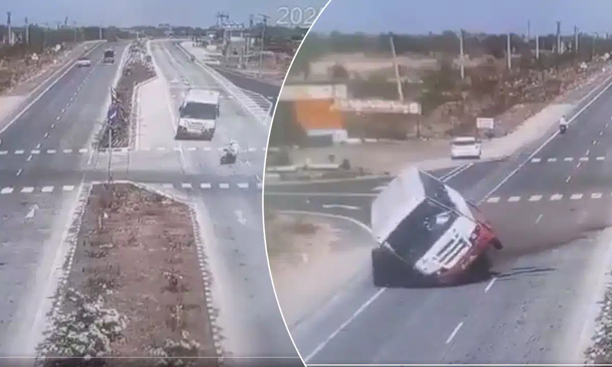 37 Lives at Risk! Bus Overturns on Highway While Avoiding Bike Collision