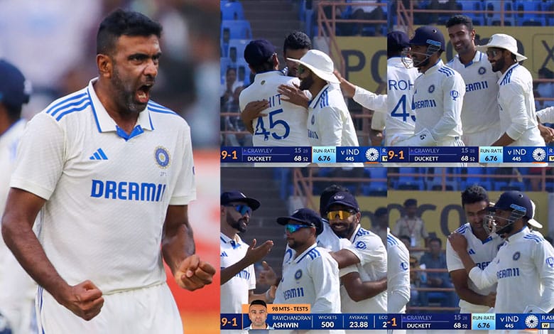 The off-spinner was on 499 scalps at the end of the second Test in Visakhapatnam and completed his 500th scalp with the wicket of Zak Crawley, who top edged a sweep to short fine leg, ending an 89-run opening partnership, on day two of the third Test. Ashwin was then swarmed by his team-mates to congratulate him on achieving the monumental feat.