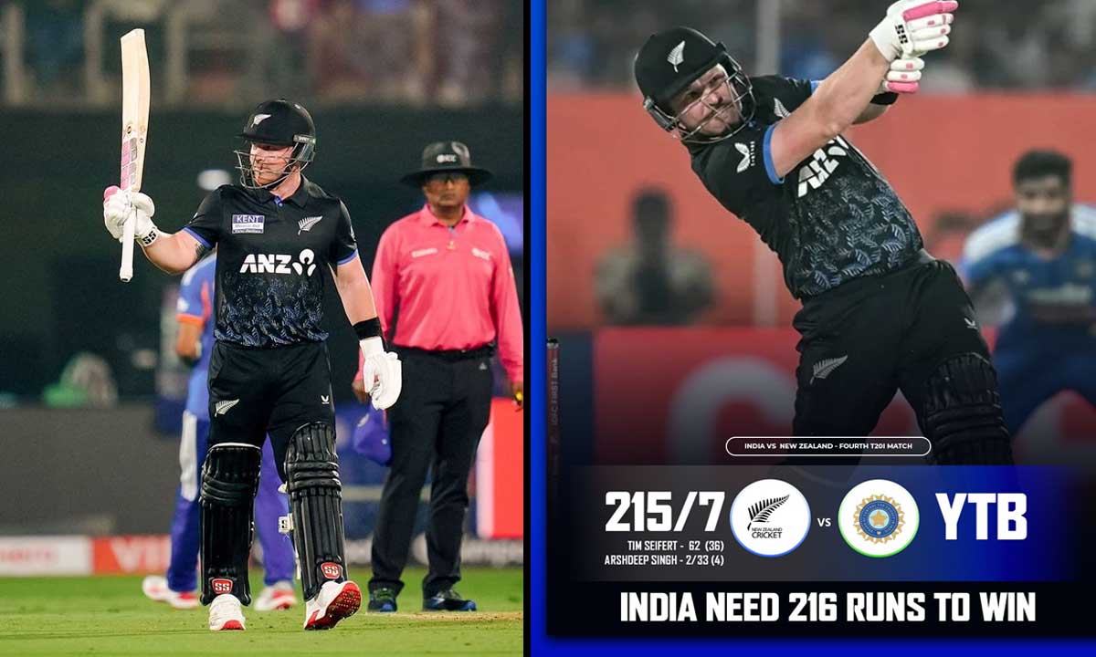 Tim Seifert, Devon Conway and Daryl Mitchell led the charge with the bat with blistering knocks to power New Zealand to 215/7 against India in the fourth T20I at the ACA-VDCA Stadium on Wednesday.