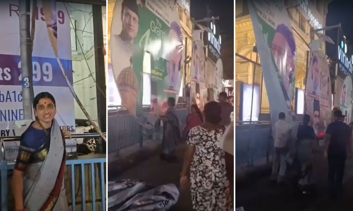 Hyderabad: A controversy over AIMIM Iftar banners in Hyderabad has sparked political debate after posters related to a Dawat-e-Iftar program scheduled at First Lancer Eidgah were reportedly removed near Road No. 12 crossroads in front of Virinchi Hospitals.