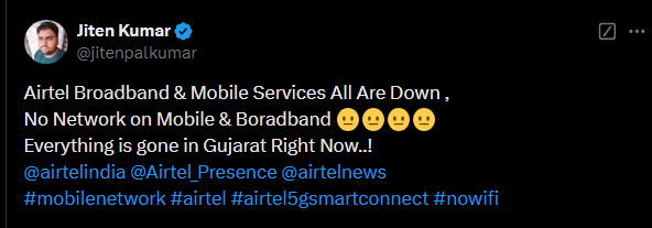 Frustrated users took to social media, particularly X (formerly Twitter), to share their experiences and demand answers from Airtel. Some users reported experiencing connectivity issues for over 24 hours, expressing dissatisfaction over the company’s lack of resolution or communication.
