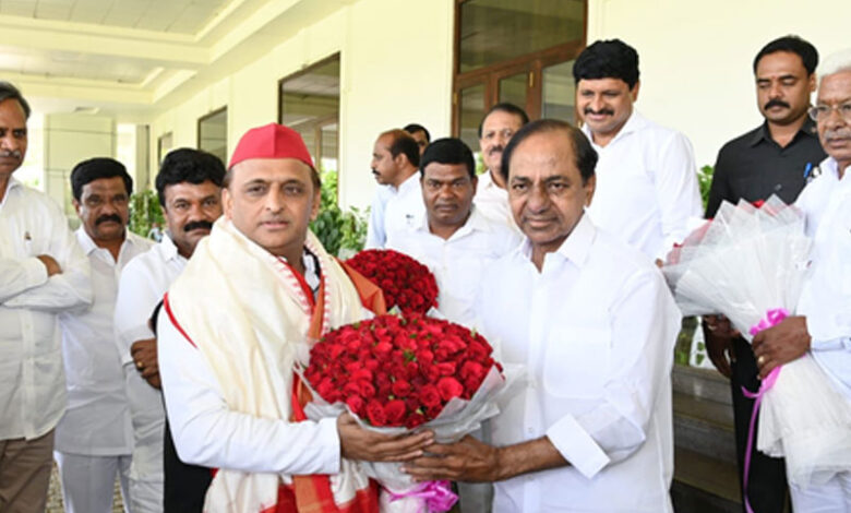 Akhilesh Yadav meets KCR in Hyderabad