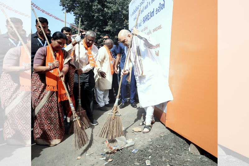 Amit Shah took part in cleaning efforts at the Ranip bus stop and its vicinity in Ahmedabad.