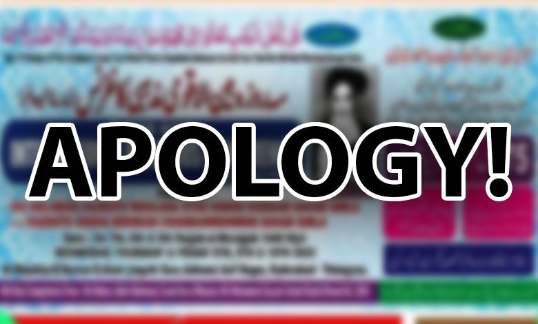 Munsif Daily sincerely apologizes for an error in our January 7, 2025, edition, where an advertisement regarding a three-day conference related to the Siddiq Hussain Chanbasveshwar was mistakenly published.