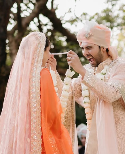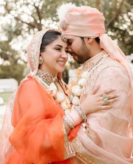 The pictures captured the couple’s love and happiness as they donned exquisite traditional outfits in coordinating shades of orange. The outdoor ceremony appeared to be a private affair, attended by close family members and friends.