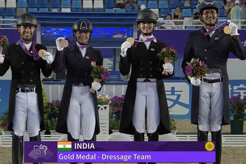 Hangzhou: India made history in the Asian Games equestrian competitions, winning a gold medal in Dressage Prix St-Georges after a gap of four decades when the quartet of Sudipti Hajela, Divyakriti Singh, Hriday Chheda and Anush AGarwala won the Team competition here on Tuesday.