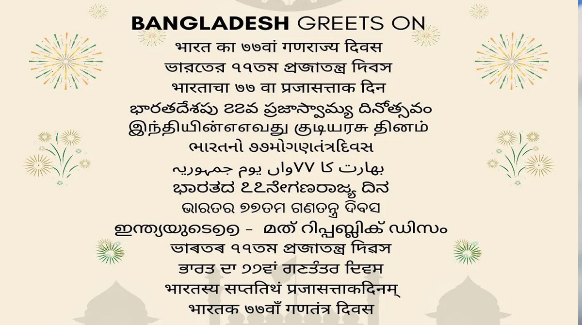 The Bangladesh High Commissioner to India, Riaz Hamidullah, while sharing an image bearing the message, “Bangladesh greets on India’a 77th Republic Day”, (the greeting was extended in 14 languages) wrote, “#Bangladesh felicitates every woman-man-child in #India on 77th Republic Day”.