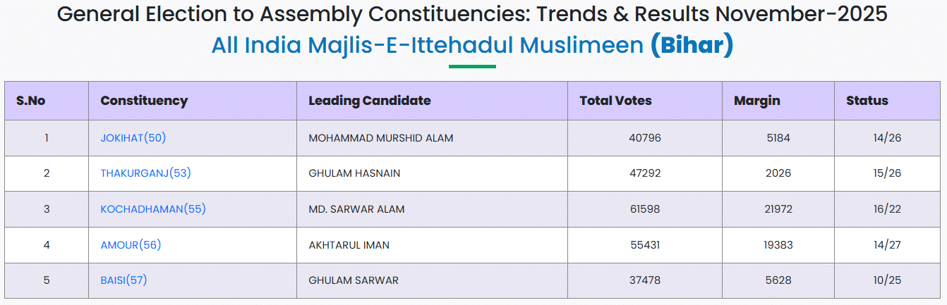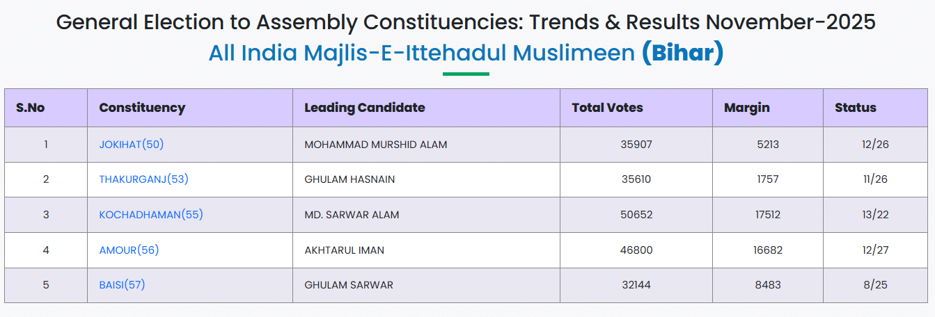 Bihar Polls: 3 Candidates of AIMIM Leading