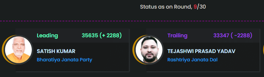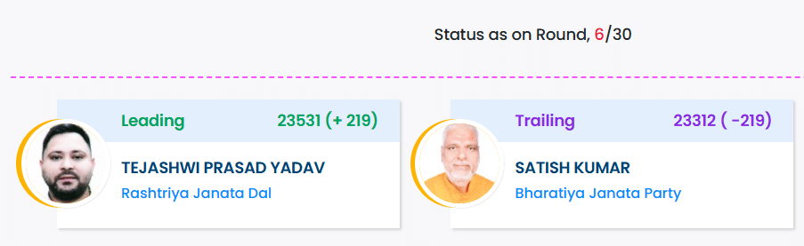 Mahagathbandhan’s CM Candidate Tejashwi Yadav Trailing by 3016 Votes, BJP’s Satish Kumar is Leading.