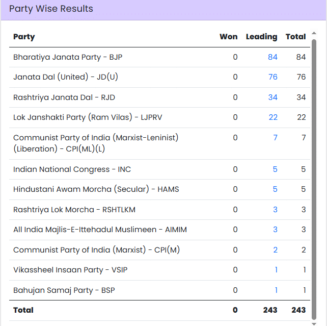 10:16 AM Bihar Assembly Results: