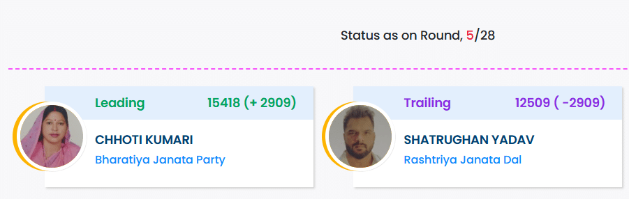 BJP and JD(U) are running neck and neck, each trading marginal leads across rounds. The RJD, which emerged as the single largest party in the last Assembly polls, is lagging behind in the chase to repeat that performance, though officials caution it’s far too early to draw hard conclusions from first-hour data.