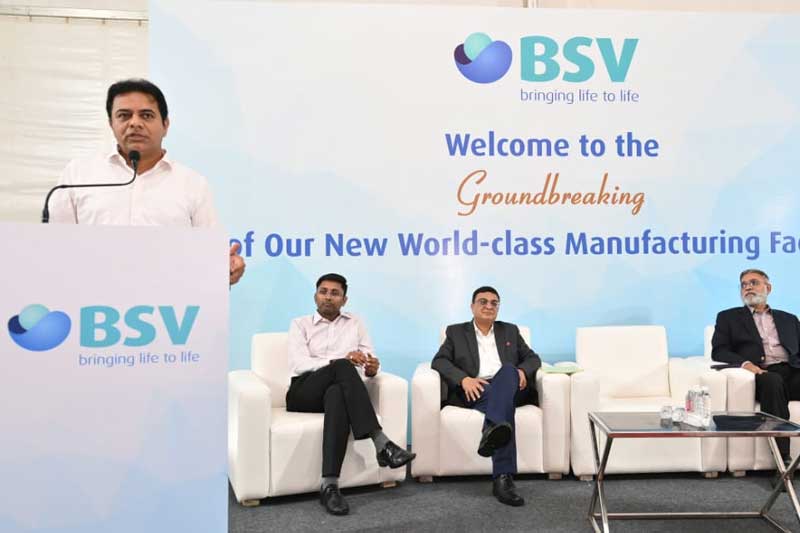 Telangana IT and Industries Minister K.T Rama Rao laid the foundation in the presence of Mr. E V Narasimha Reddy, Vice Chairman and Managing Director, TSIIC, Mr. Shakthi M Nagappan, CEO, Telangana Lifesciences and BSV Managing Director and CEO Mr. Sanjiv Navangul.
