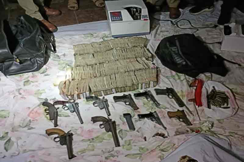 Besides, 11 pistols and dozens of live cartridges have also been found. Two persons have been arrested.
