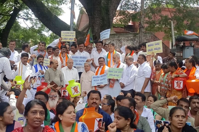 Former CM Basavaraj Bommai and other top leaders from BJP are taking part in the protest. The BJP unit is organising protests across Bengaluru.