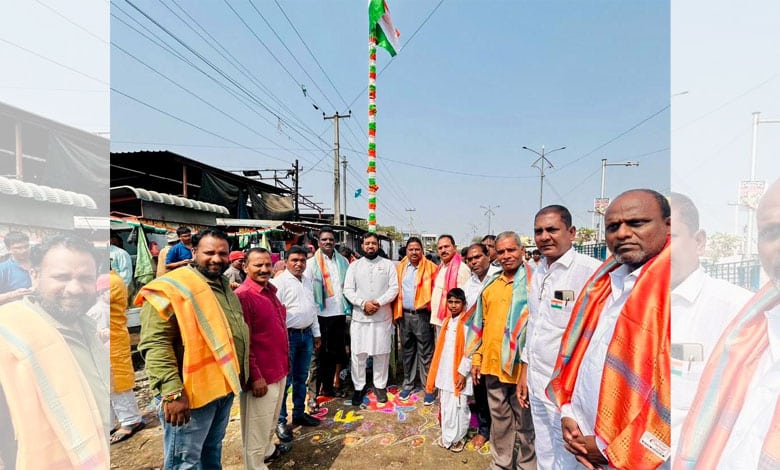 In a symbolic celebration of the 75th Republic Day, Mr. Osman Bin Mohammed Al Hajri, a contested MLA and in-charge of the Karwan Constituency from the Congress party, proudly hoisted the National Flag near the Zia Guda Slaughter House.