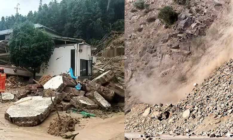 The landslide overturned a guest house, trapping 21 people under the rubble, CCTV reported later in the day.