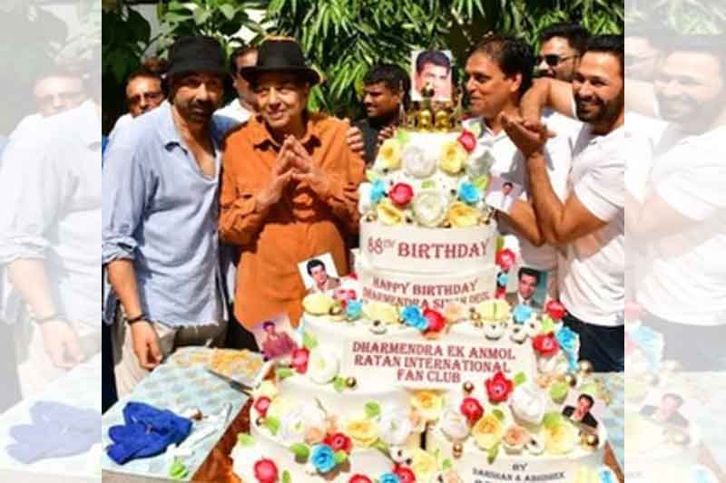The actor celebrated the special day with his fans and his elder son Sunny Deol also posed with him for the paparazzi. The actor cut a massive cake, a special gesture from one of his fan clubs. The cake featured the actor’s photos and colourful, edible roses.
