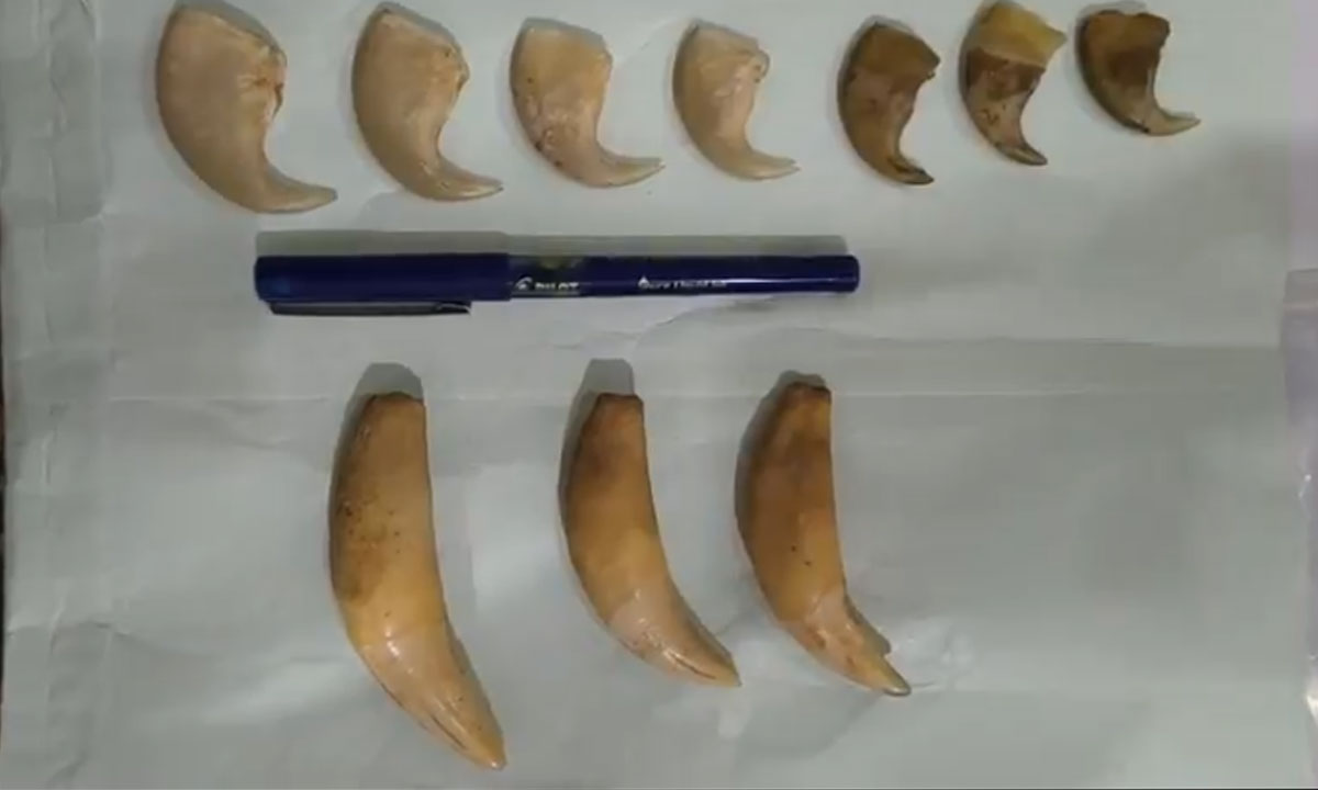 Hyderabad: The Directorate of Revenue Intelligence (DRI), Hyderabad, has busted an illegal wildlife trade racket and seized 7 tiger nails and 3 tiger canine teeth, dealing a major blow to the grey market trade in protected wildlife parts.