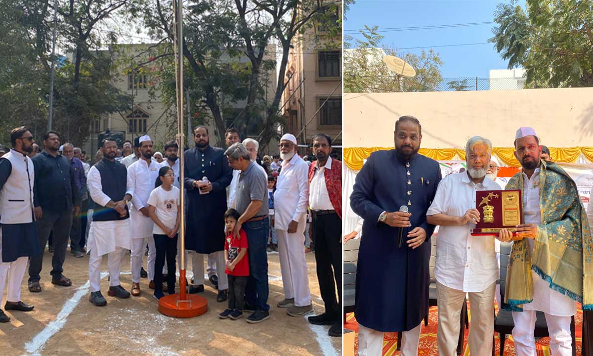 As part of the 77th Republic Day celebrations, the national flag was unfurled by Faheem Qureshi, Chairman of the Telangana Minorities Residential Educational Institutions Society (TGMREIS), along with Mohammed Asif Hussain Sohail, President of the Surya Nagar Welfare Association.