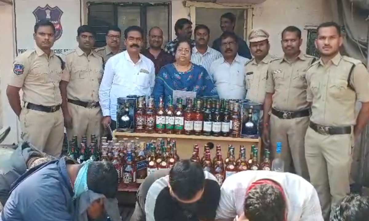 The Excise Department busted a fake liquor racket in Gachibowli, Hyderabad, arresting five accused and seizing ₹8 lakh worth of fake liquor, bottles, scooters, and mobiles.