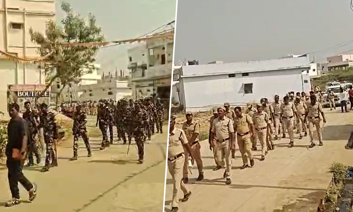 Vikarabad District: Police Flag March Held in Tandur Ahead of Municipal Elections: Videos
