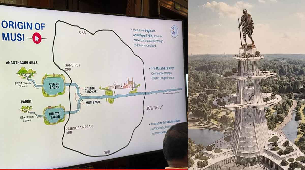 Highlighting the historical and cultural importance of the city, the Chief Minister said the confluence of the Musi River and the Esi River was selected as the site for erecting the statue of Mahatma Gandhi. He described the location as symbolic, representing the meeting of history, culture, and the ideals that shaped the nation.