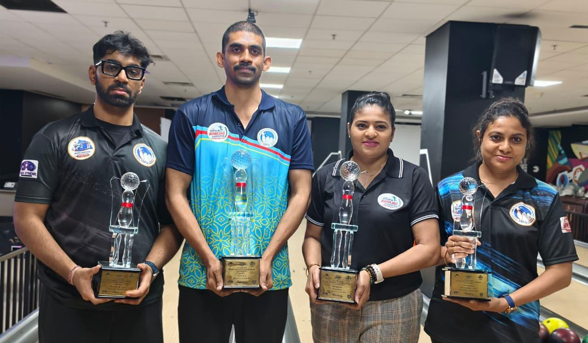 In the women’s division, Sruthi Adhini outperformed top seed Sindhura in a two-game final. Sruthi built a 17-pin lead in the first game (131–114) and extended it in the second game, scoring 142 against Sindhura’s 132. She secured the title with a total score of 273–246, winning by 27 pins.