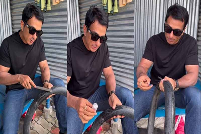 Mumbai: Actor and philanthropist Sonu Sood, who is currently shooting for his upcoming action thriller ‘Fateh’, has extended his support for the local business of a puncture repair shop, near Hyderabad, and himself tried his hand in repairing one.