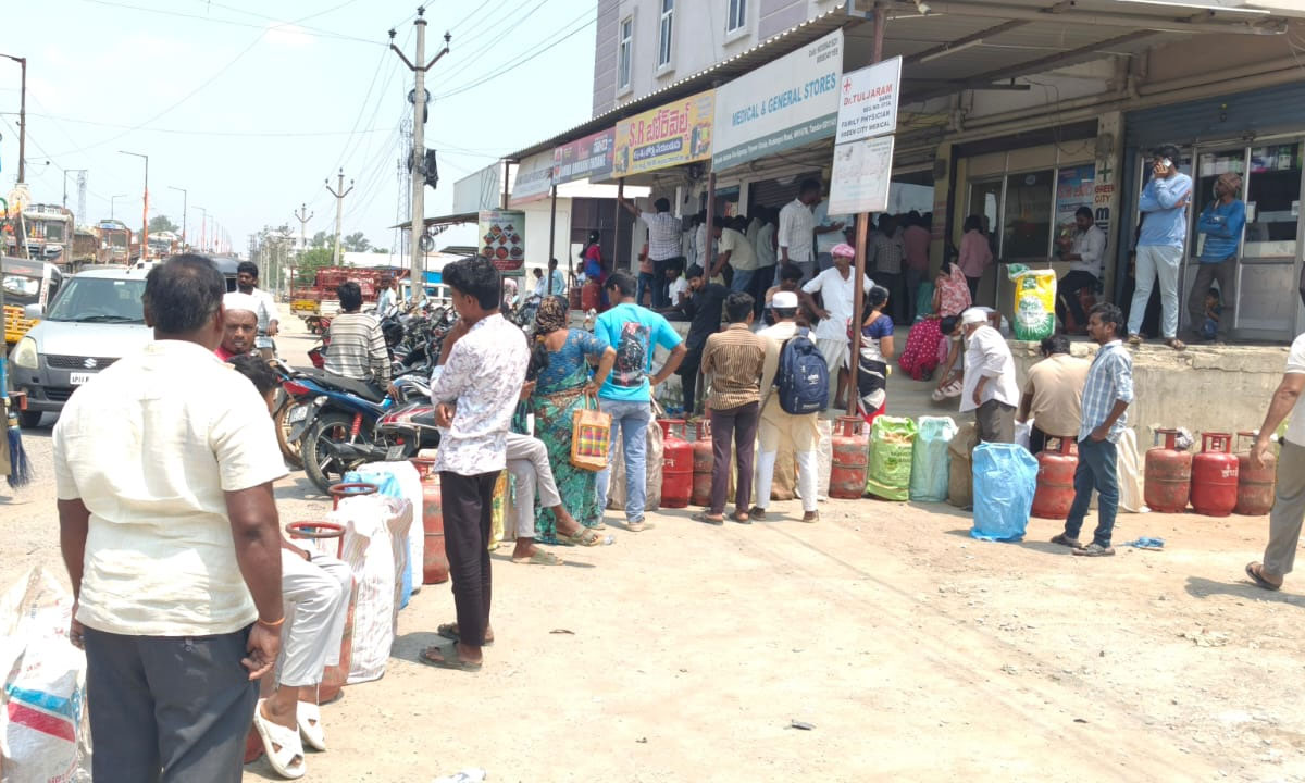 A gas cylinder shortage in Tandur town of Vikarabad district has led to long queues outside gas agencies, as consumers struggle due to a DAC issue delaying LPG cylinder delivery. Despite completing bookings, many residents are unable to receive cylinders, causing widespread frustration.