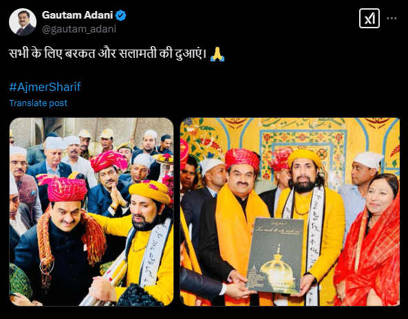 The Dargah Khadim (caretaker) noted that Gautam Adani and his family took time to experience the timeless message of Hazrat Khwaja Moinuddin Chishti. The teachings of Garib Nawaz, which emphasize love, peace, and unity, continue to inspire people of all faiths and backgrounds.
