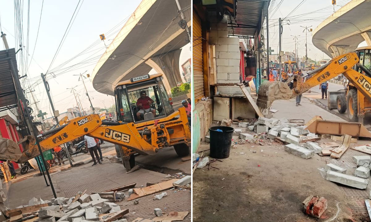 GHMC Cracks Down on Footpath Encroachments from Attapur to Shivaram Pally in Ranga Reddy District