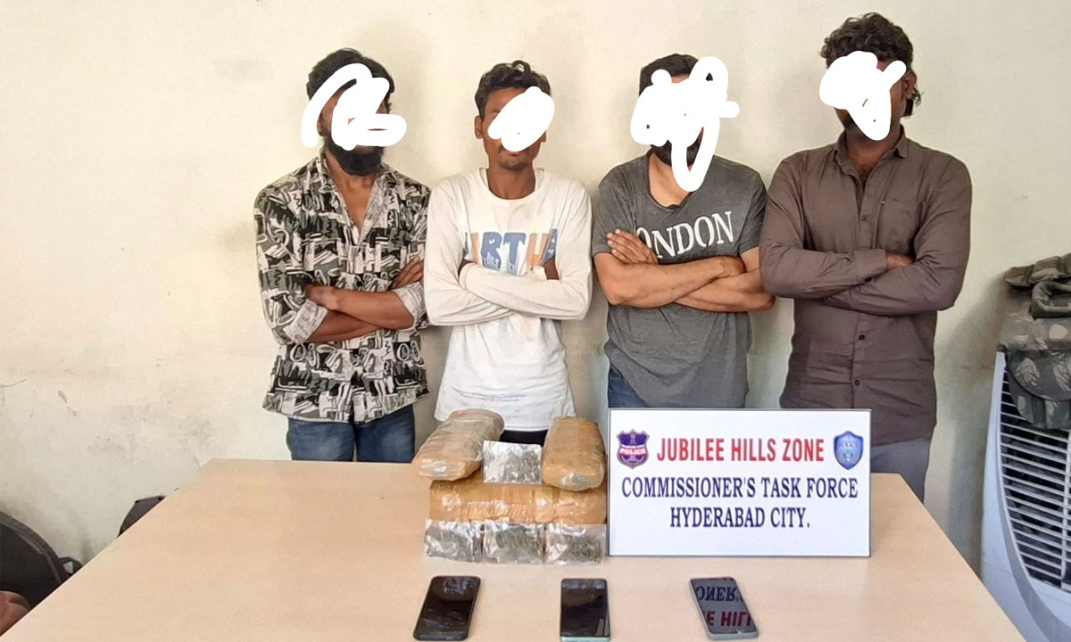 Hyderabad drug bust: four arrested with 4 kg dry ganja worth ₹2 lakh in Jubilee Hills Zone Task Force operation.