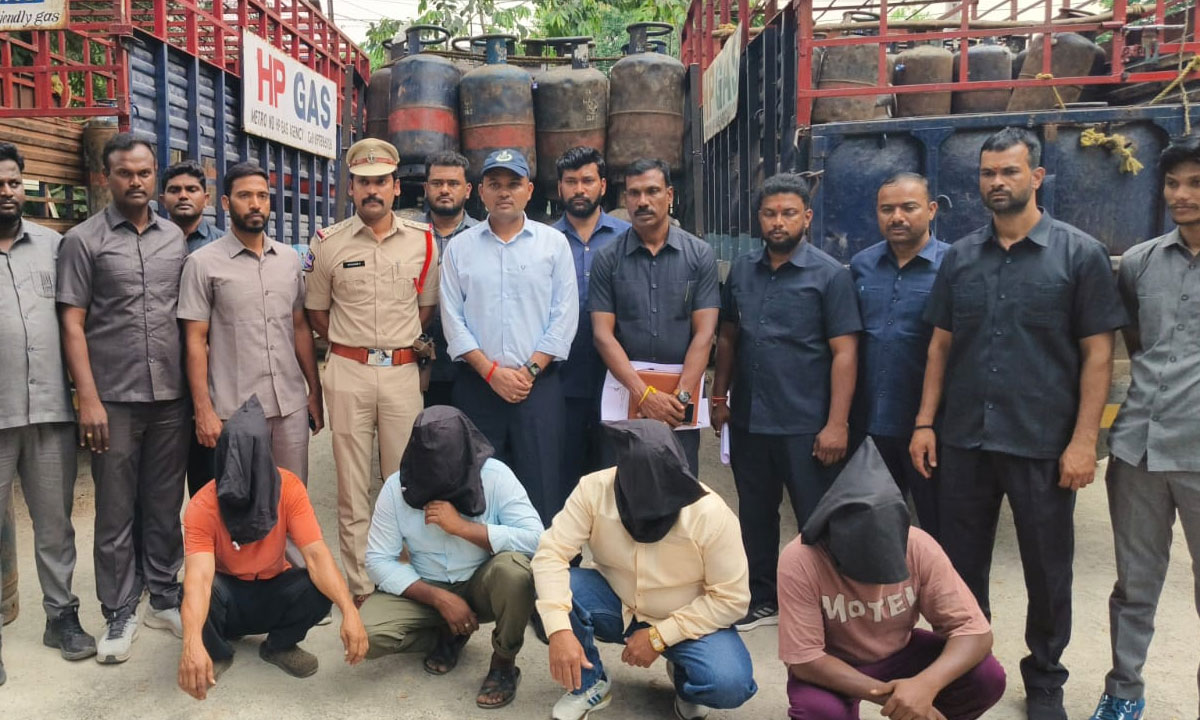 The raid was conducted near Nagarjuna X Road, Banjara Hills, where the accused were found illegally dumping and selling HP gas cylinders to customers.