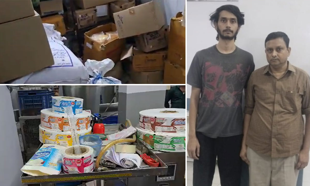 The raid was conducted at Blue Bells Ice Cream factory located in Bapuji Nagar. Authorities found: