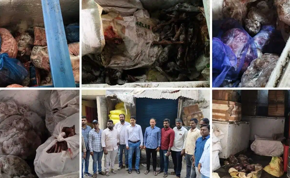 During the raid, officials seized 2 quintals of stale goat and sheep offal, valued at ₹1.5 lakh.