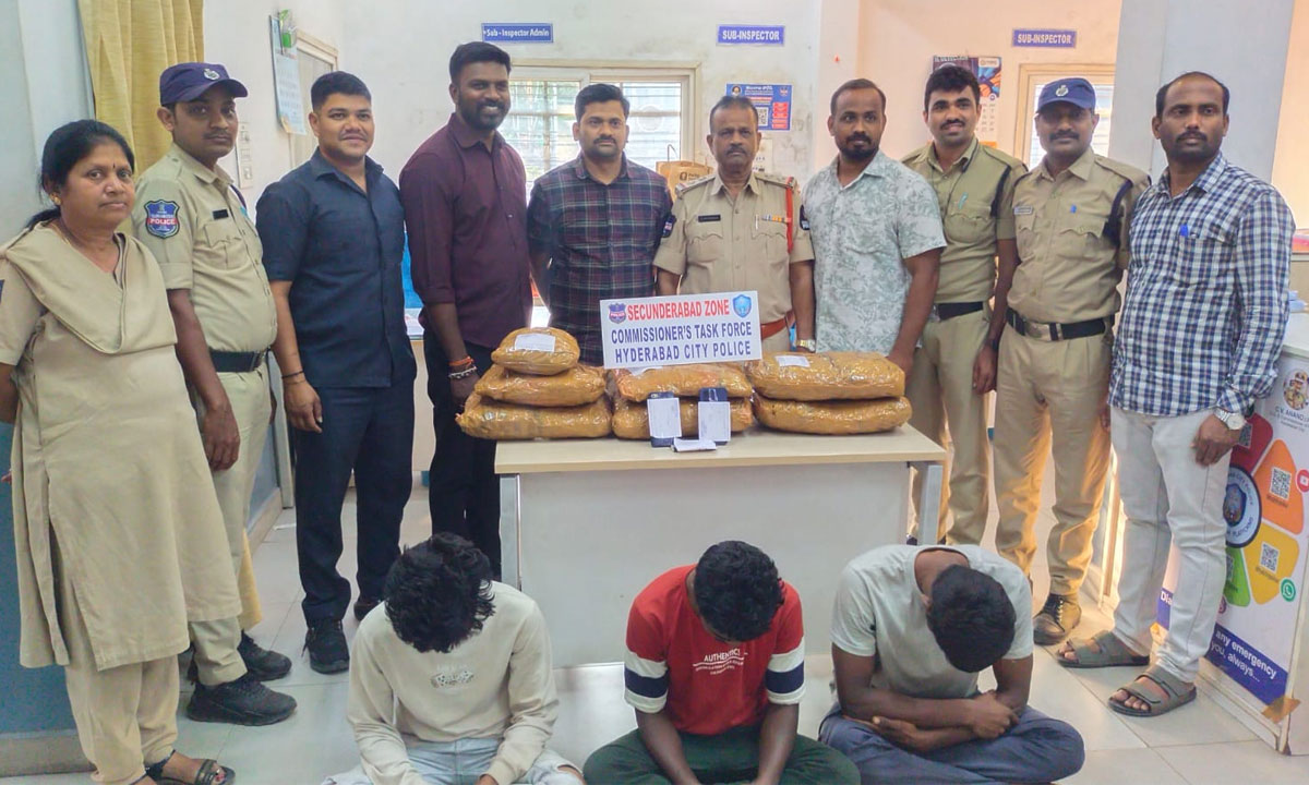 Hyderabad: In a major anti-narcotics operation, the Hyderabad Task Force busted a ganja racket in Chilkalguda and arrested three ganja peddlers along with four consumers, seizing 11.530 kilograms of ganja near the Secunderabad railway area.