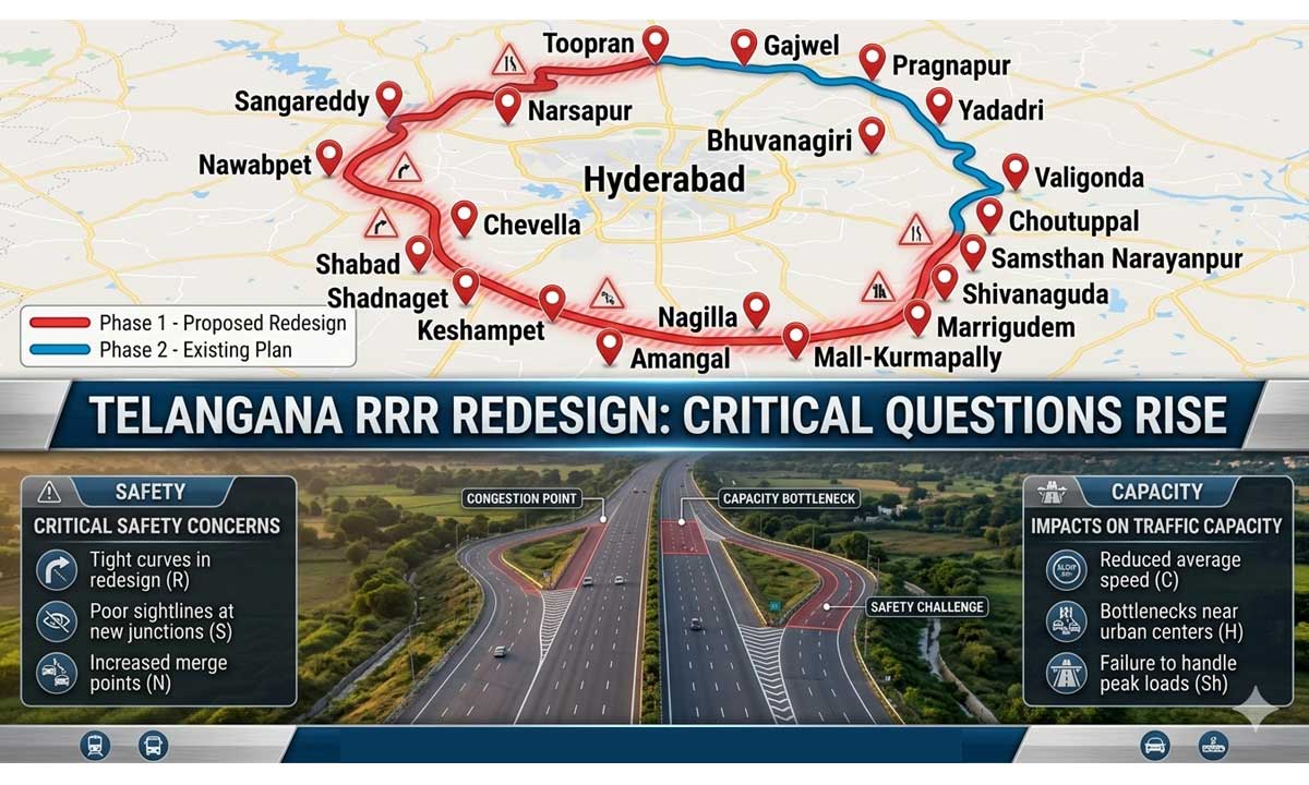 Hyderabad: In a significant shift, the ambitious Regional Ring Road (RRR) project planned around Hyderabad has undergone major design changes, effectively transforming it from a high-capacity express corridor into a standard national highway.