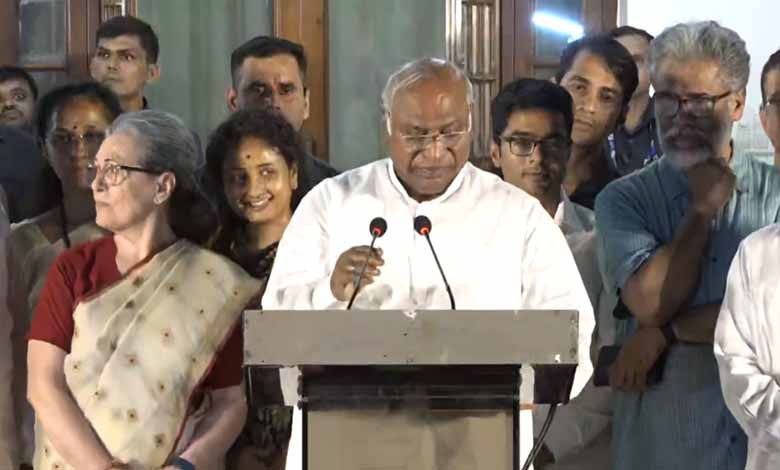New Delhi: Congress President Mallikarjun Kharge announced that the INDIA bloc has expressed gratitude to the people of India for their overwhelming support in the recent elections. The announcement came after a detailed discussion on the political situation at a meeting held at Kharge’s residence.