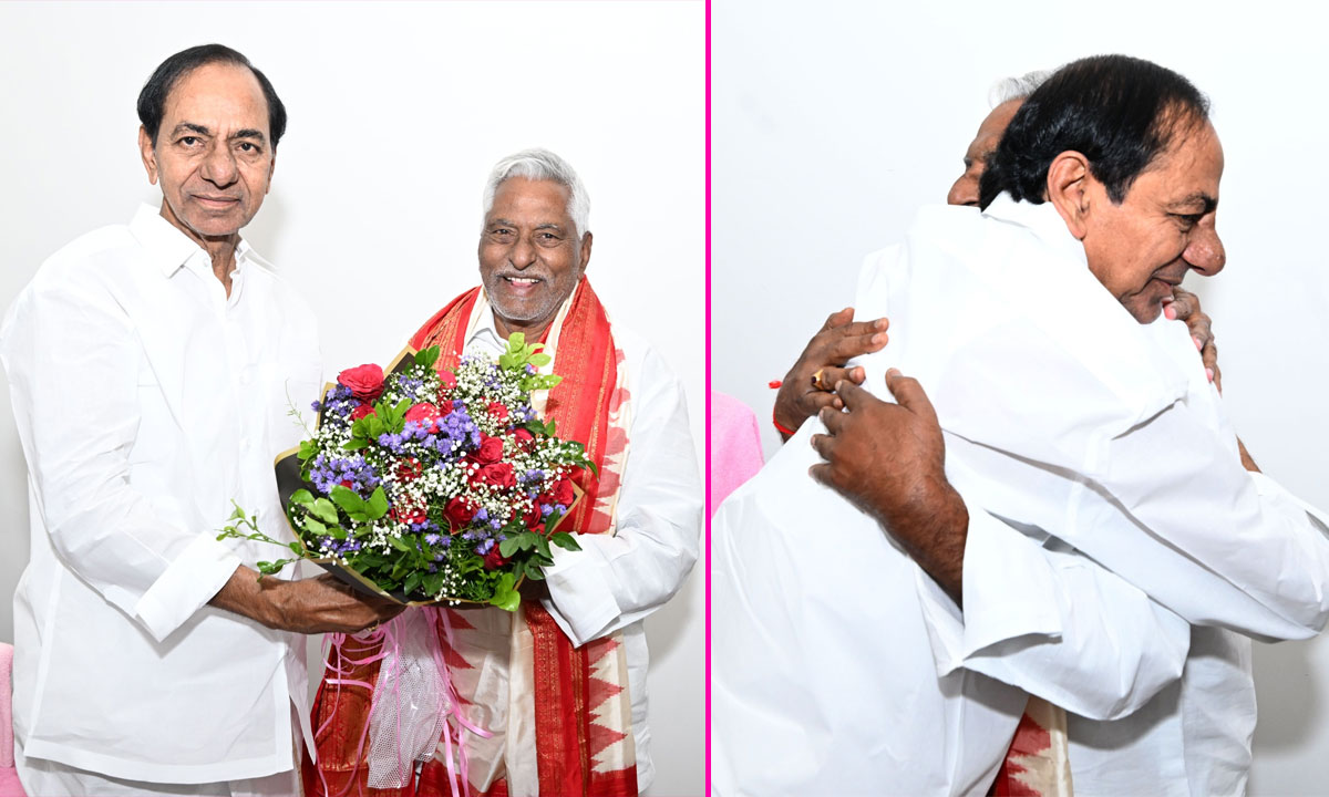 Congress leader Jeevan Reddy meets KCR at Erravalli. KT Rama Rao and BRS leaders give grand welcome in Siddipet district meeting.