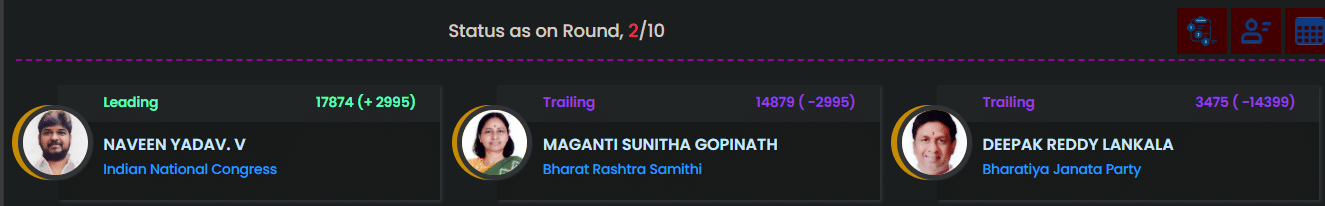 The Congress is leading in the third round.