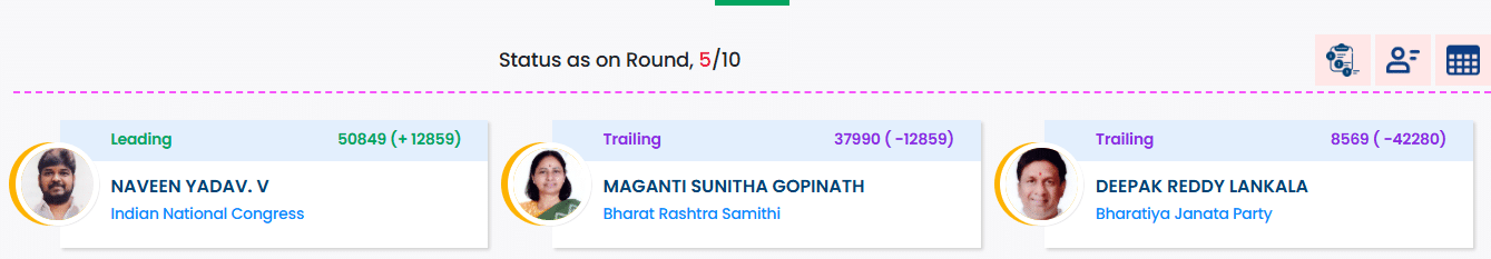 Jubilee Hills: After 5 Rounds of Counting as Per ECI