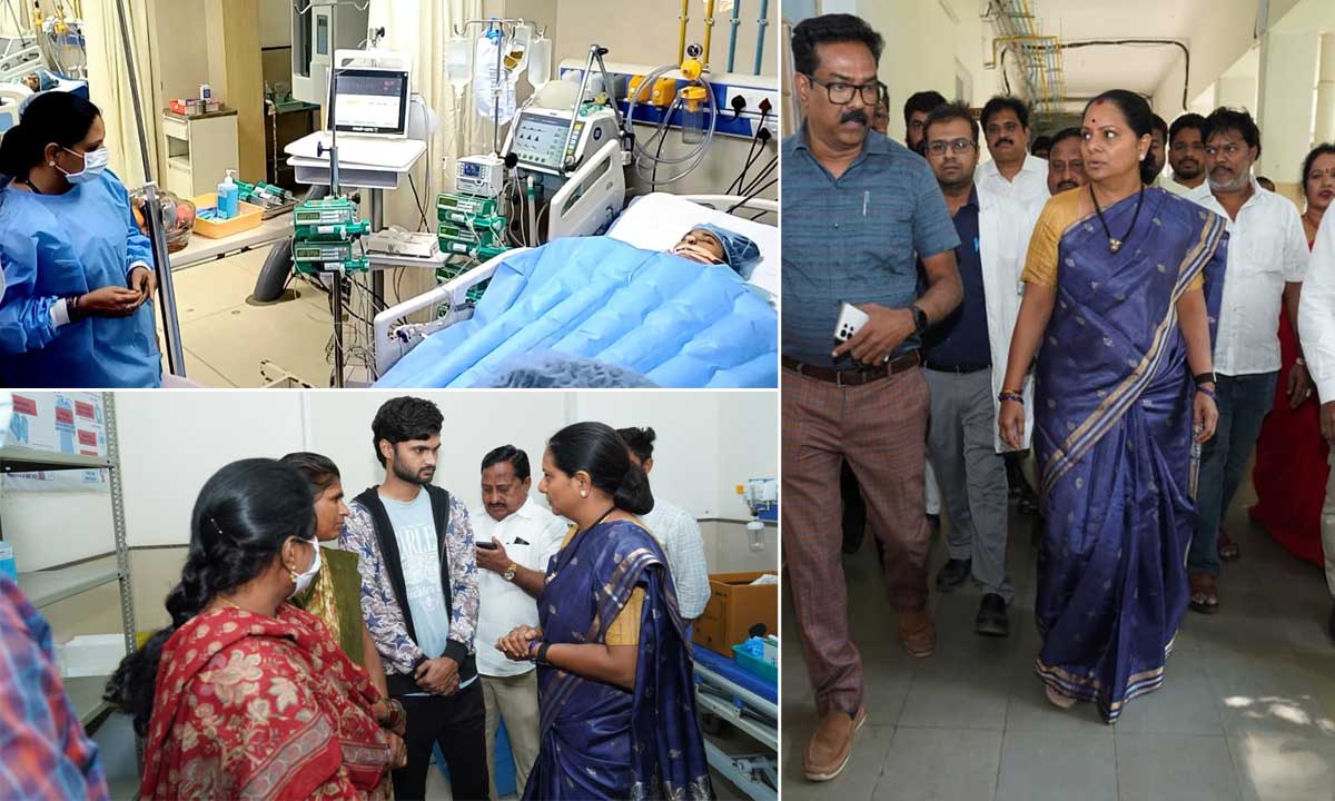 Kalvakuntla Kavitha visited injured excise constable Soumya at NIMS Hospital and demanded immediate action against drugs and ganja mafia in Telangana.