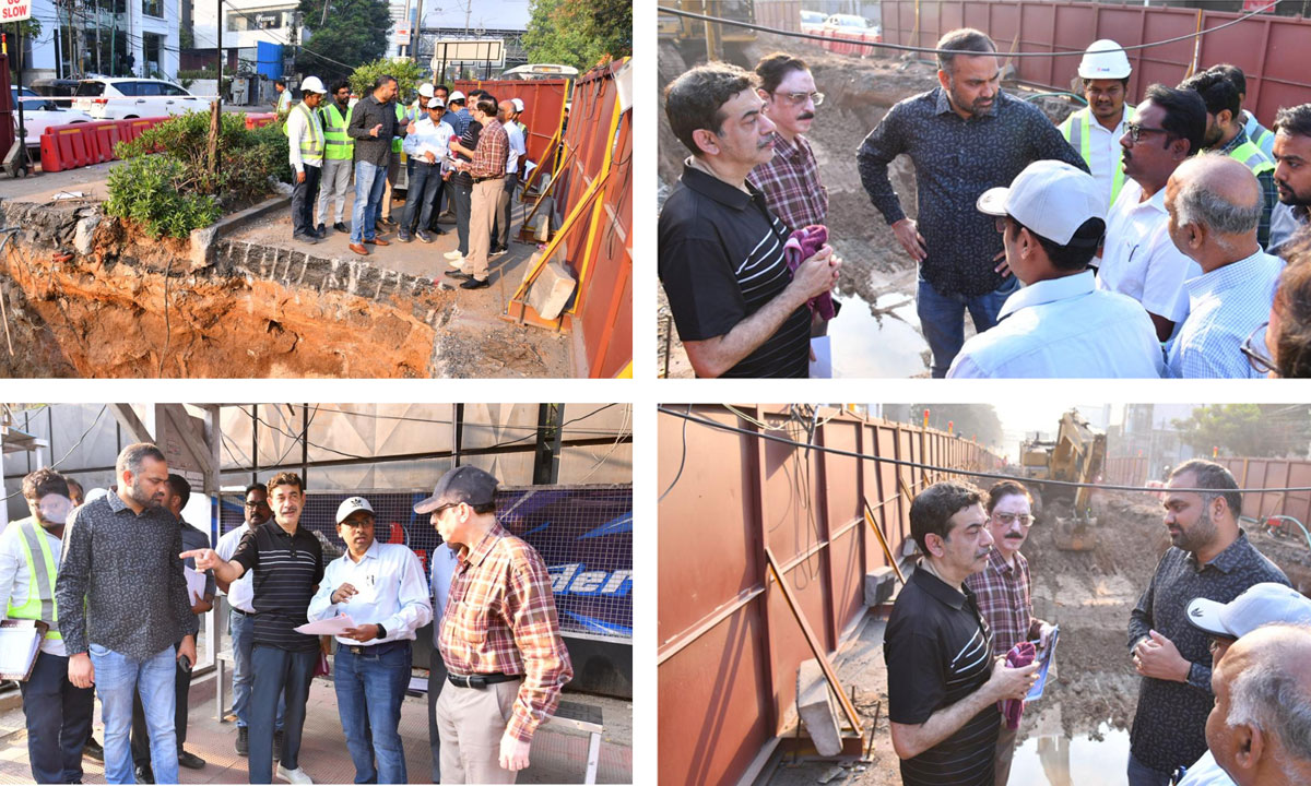 Senior officials, including GHMC Commissioner R.V. Karnan and Chief Engineer Sahadev Ratnakar, assessed the progress of the KBR Park Flyover Hyderabad project.