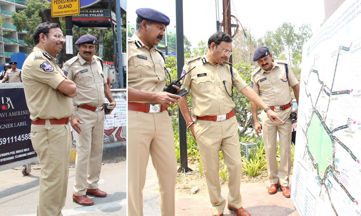 Hyderabad: A one-way traffic trial run around KBR Park was conducted on Sunday under the H-CITI project in Hyderabad, with V. C. Sajjanar personally inspecting the arrangements to ensure smooth traffic movement and safety.