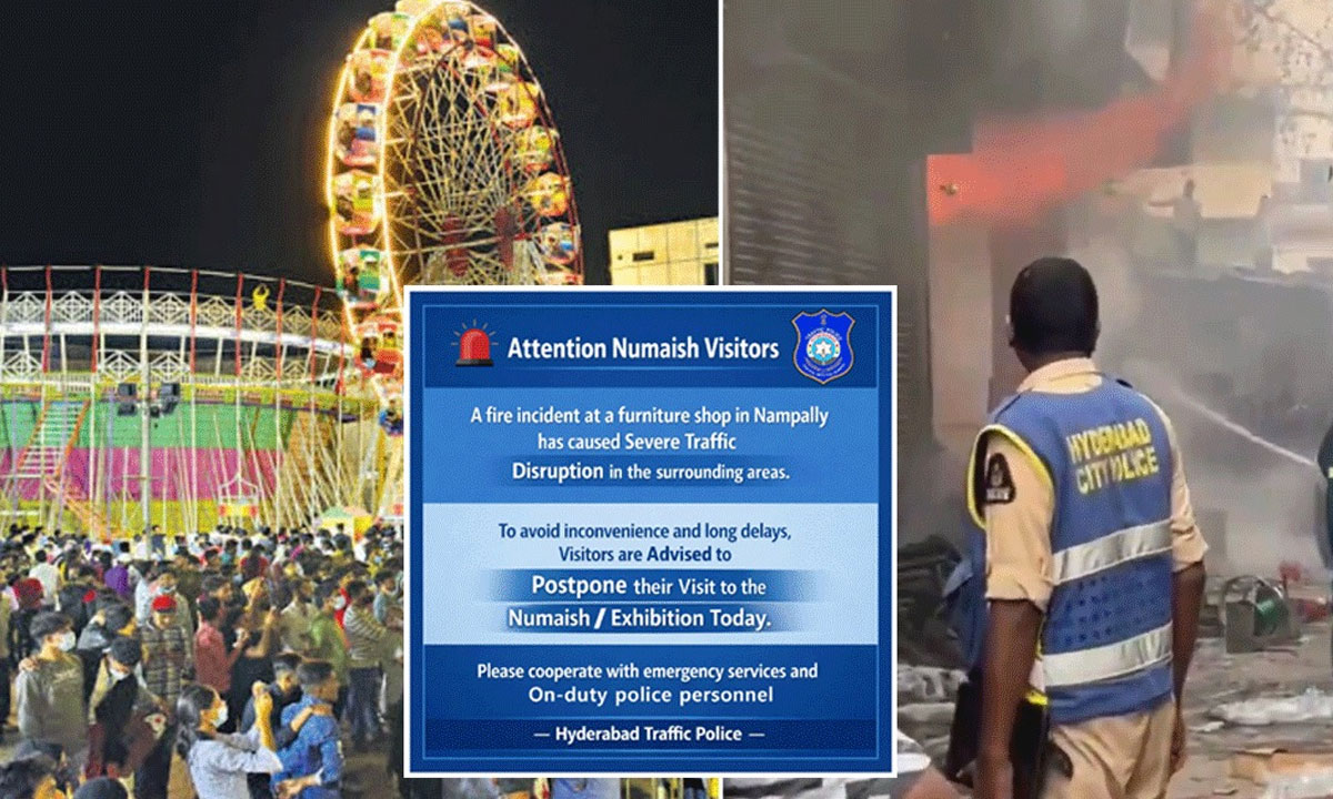 Hyderabad: In view of a major fire accident in Nampally, Hyderabad Police Commissioner V.C. Sajjanar, IPS, has appealed to the public to postpone their visit to the Nampally Numaish for one day. He stated that a severe fire at a furniture shop in the area has led to heavy traffic congestion, which may cause inconvenience and pose safety concerns for visitors.