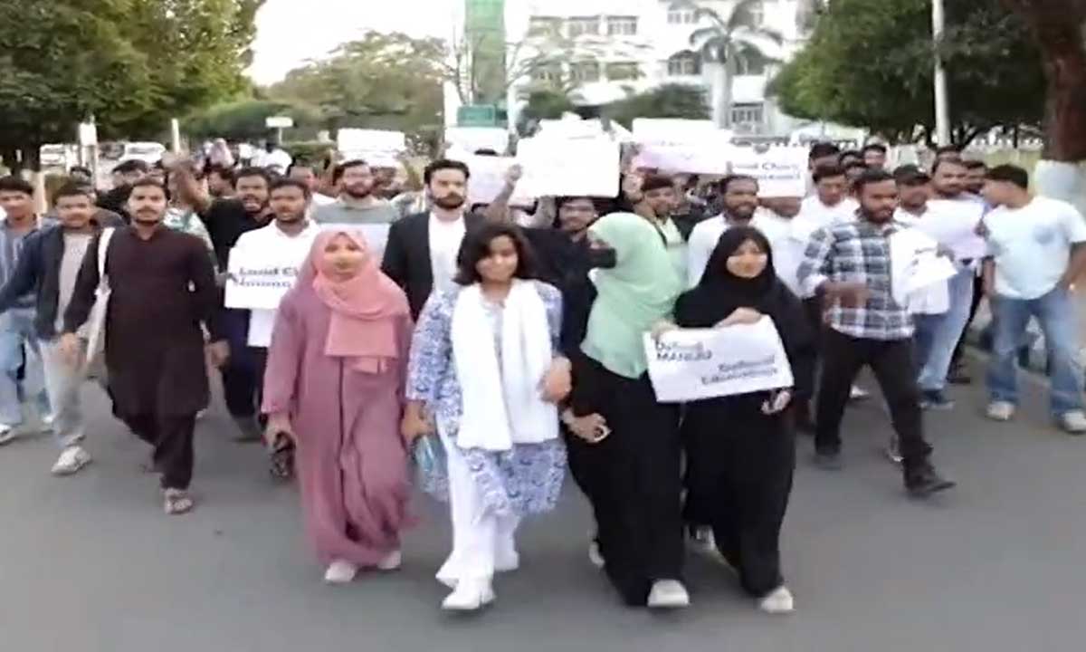 The slogans reflected growing anger over the MANUU land issue, which students say threatens the future of the university.